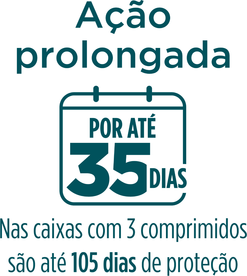 - Possui ação rápida: fazendo efeito em 3 horas, mantendo-se por até 35 dias;